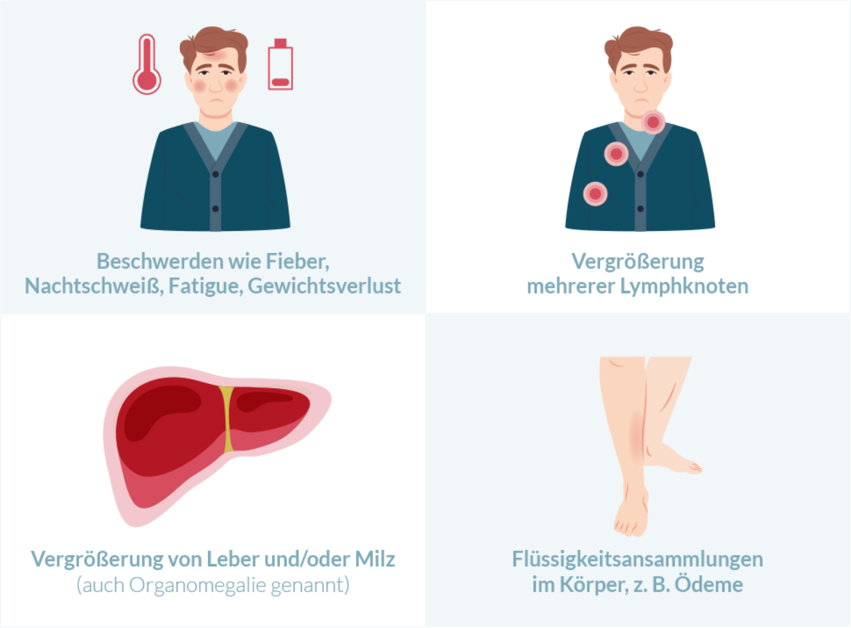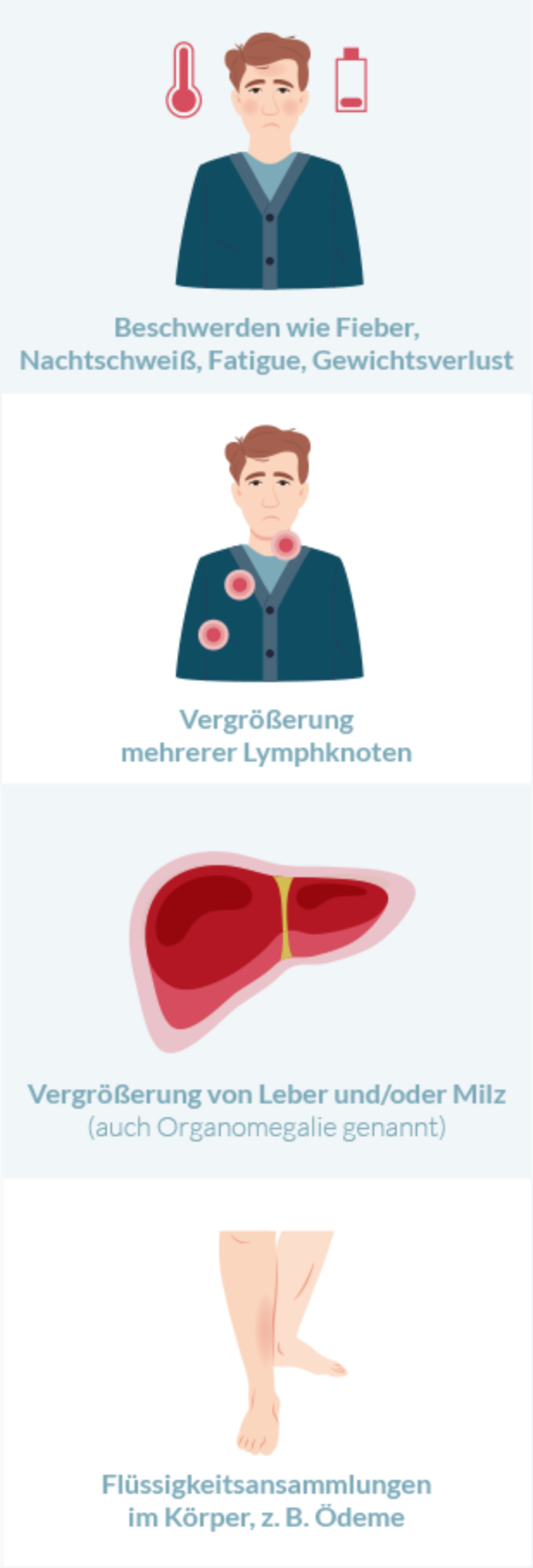 Wie schon beschrieben, ähneln die Symptome des idiopathischen multizentrischen Morbus Castleman